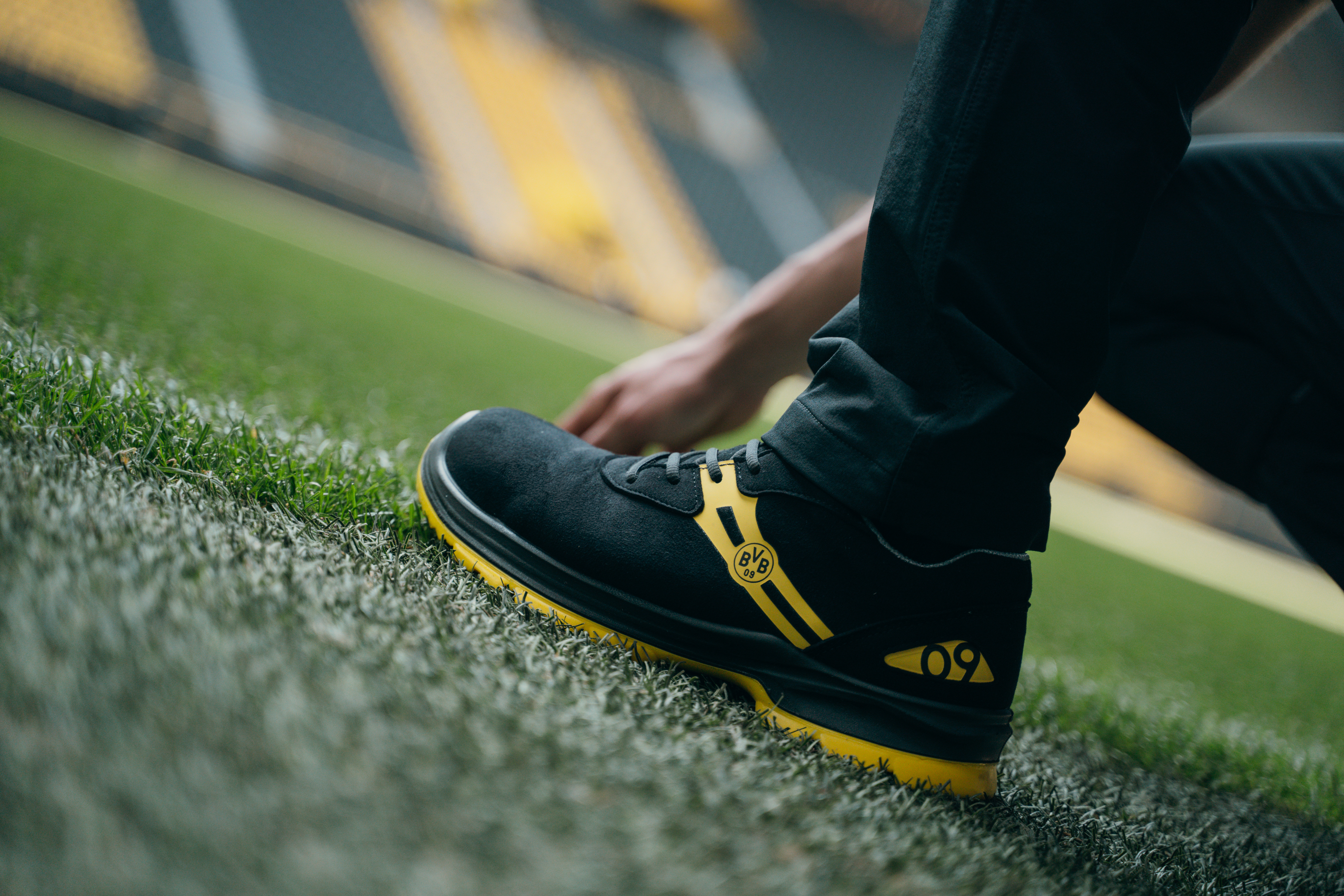 BVB-Fans & Lokalpatrioten: Für alle, die Schwarz-Gelb im Herzen tragen. Zeigen Sie Ihre Zugehörigkeit auch im Job. Dieser Schuh ist ein Statement für "Echte Liebe" zum Verein und zur ehrlichen Arbeit.