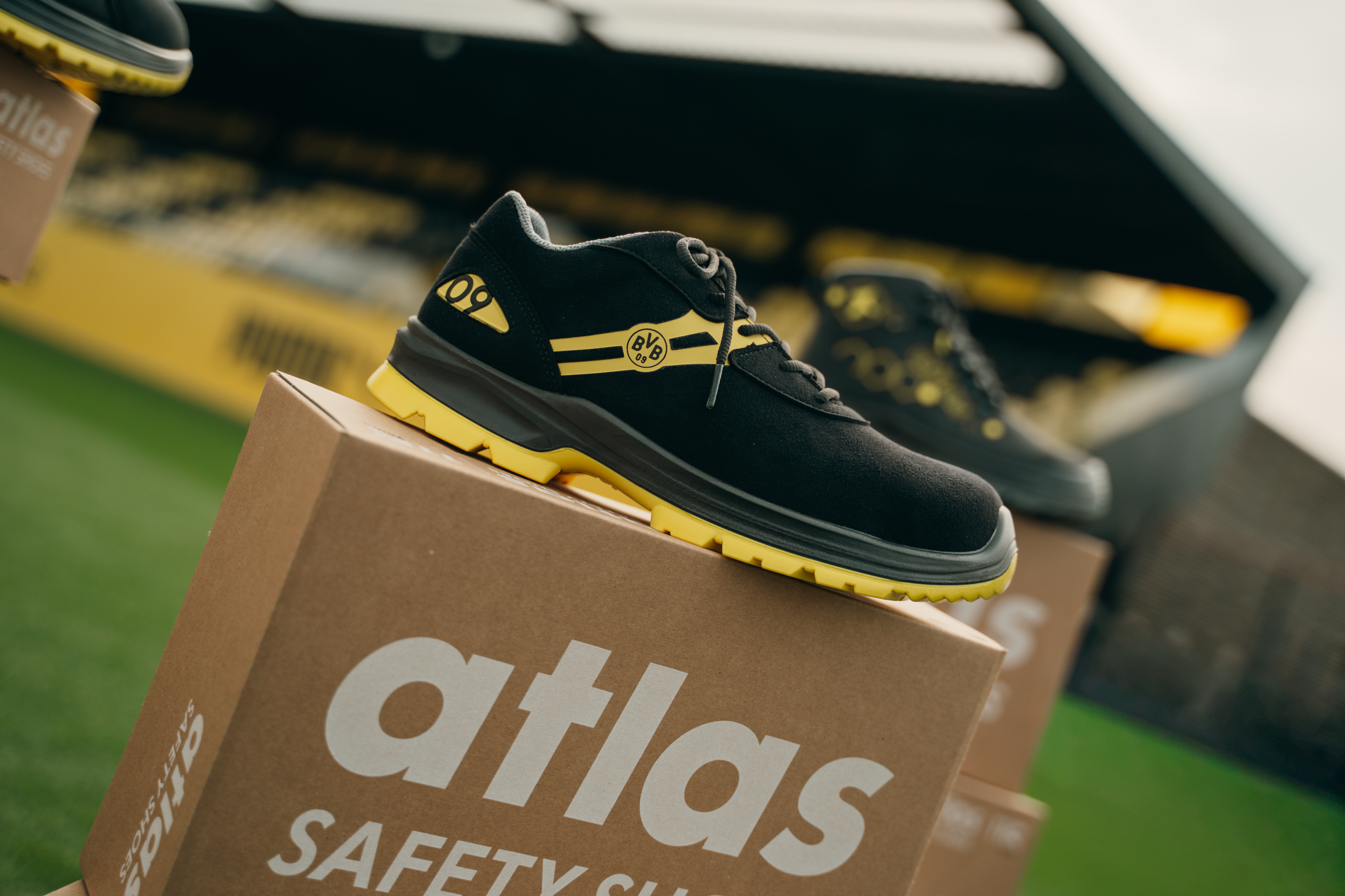 Das Herzstück der Serie ist die unschlagbare Kombination aus widerstandsfähigem Waterproof-Leder und der bewährten ATLAS-Technologie. Während gewöhnliche Arbeitsschuhe oft nur Mittel zum Zweck sind, steht der Malocher 09 für Identifikation. Das BVB-Logo auf der Lasche und die schwarz-gelben Akzente machen klar: Hier wird nicht nur gearbeitet, hier wird malocht.